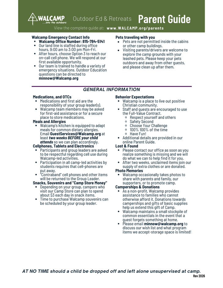 Walcamp Outdoor Education programs and Youth Retreats are led by our year-round staff and seasonal employees with training and experience to work with youth. Our leadership staff are certified in First Aid and CPR, and are equipped with a wide variety of kid-friendly activities and games to ensure that their campers receive quality outdoors experiences.